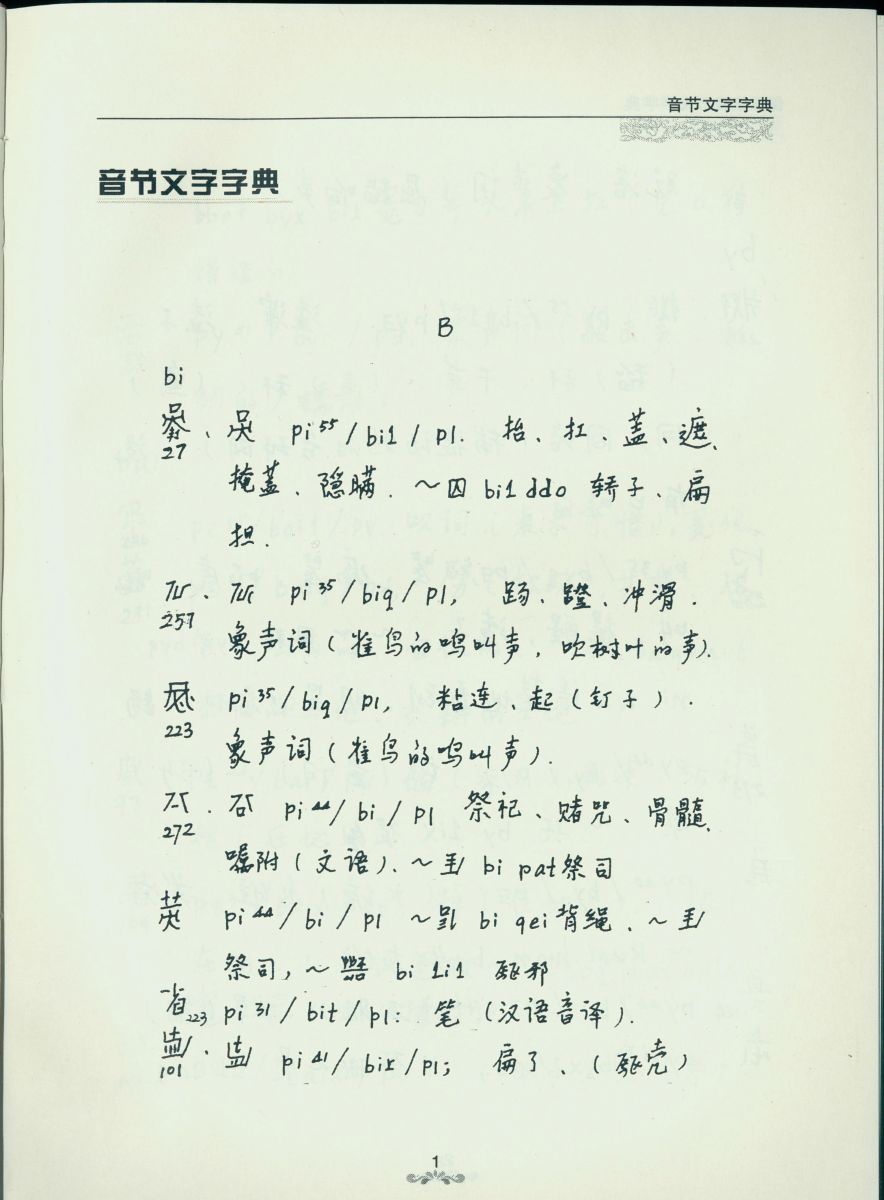 2.系统的“助记”符号发展为成熟文字一般要通过同音假借。由“助记符号”演变为成熟文字的过程中,彝文经过同音假借,并对字形本身加以“符号化”。这一演化往往来自应用者的自觉,当助记符号细化到提示语言中的词的时候,其本身的繁琐就会促使应用者求变,合并、减省助记符号,质变到“记录”语言的成熟文字。同时,合并、删减的过程中,也必然伴随着“符号化”的过程,因为一旦助记符号向纯音节文字演化,其原始形态就成了记忆的障碍。彝文正是经历了这样一个“符号化”和同音假借的过程,才成为现在这样真正记录语言中词素的音节文字。